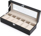 Black PU Leather Watch Organizer Display Storage Box Cases for Men & Women (6 slots)