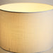 A short chrome stem supports the traditional white cylindrical lampshade that allows light to gracefully cascade down to the base while gently filtering light through its surrounds. This lamp comes in two gloss finishes; a pale blue pastel or a striking pearl white.