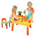 Your child will improve visual perception, hand-eye coordination skills and simulate imagination all while having a blast with this two-in-one playtime table. Simply slide the cover on top to store all the accessories and the sand and water table now becomes a simplified, basic table for drawing or snack-time breaks.