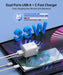 This charger with two PD 3.0 & QC 3.0 power delivery ports can simaltaneously fast charge which will save you time and save outlet place when have to charge two devices. If you use both the USB-C and the USB-A port then the total output power will amount to 22.5W.