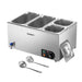Keep food warm and ready to serve with this professional stainless steel food warmer. It features 4 removable food-grade pans, U-shaped heating for even heat, and an adjustable thermostat (30C-85C). The removable water bath ensures easy cleaning. Designed with non-slip feet, overheating protection, and an SAA-certified plug, it's safe and reliable. A perfect choice for buffets, events, restaurants, or home kitchens.