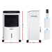 Our Devanti Evaporative Air Cooler is an air cooler and humidifier rolled into one compact and stylish machine. To use it as an air cooler, simply prepare the included ice crystals according to instructions, leave it in the 8L water tank and turn on the evaporative cooler to get super cool breezes throughout the room with its adjustable louvres and oscillation. The removable filters and the built-in ioniser together effectively eliminate all pollutants such as dust, pollen, cigarette smoke, bacteria and odours, to deliver purified air. The evaporative air cooler utilises a 3-speed fan with three working modes (normal, natural and sleep), and is fitted with four castor wheels for easy mobility. Not least, the button control panel enables easy operation, with a remote control included for extra convenience.