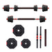 The Everfit Dumbbell Set is a 4-in-1 adjustable barbell and dumbbell combo, offering versatile weight options in a compact design. Perfect for home gyms, this 20kg set includes durable weight plates and bars for strength training, cardio, and muscle toning. Ideal for fitness enthusiasts seeking a space-saving, all-in-one workout solution. (Safety Note: Never stack more than two weights near the Barbell Connector. The Barbell Connector is for connection only – not for load-bearing.)