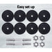 Time to get tough. If you are looking to boost those triceps, biceps and shoulders, our 25kg Dumbbell Set is the perfect deal for you. Whatever your game is, our dumbbell set lets you strengthen and tone those muscles your way. This commercial-grade set features a high-quality bar with non-slip handle that offers optimal gripping surface. Each weight plate weighs 2.5kg and is made of cast cement coated with smooth plastic, reducing clanging sounds and making them more floor-friendly. You can adjust the weight of the dumbbell by removing the weight plate and only using the dumbbell bar (weighing 2.5kg each) or adding more compatible weight plates. The star-shaped nuts ensure the weight plates stay securely in place for safe workouts. Best of all, the dumbbell comes in a set of two (two 12.5kg dumbbells for 25kg total) so that you can exercise both arms at the same time. Gym junkie or workout pro, you can get fit easily with our 25kg Dumbbell Set.