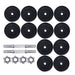 Time to get tough. If you are looking to boost those triceps, biceps and shoulders, our 35kg Dumbbell Set is the perfect deal for you. Whatever your game is, our dumbbell set lets you strengthen and tone those muscles your way. This commercial-grade set features a high-quality bar with non-slip handle that offers optimal gripping surface. Each weight plate weighs 2.5kg and is made of cast cement coated with smooth plastic, reducing clanging sounds and making them more floor-friendly. You can adjust the weight of the dumbbell by removing the weight plate and only using the dumbbell bar (weighing 2.5kg each) or adding more compatible weight plates. The star-shaped nuts ensure the weight plates stay securely in place for safe workouts. Best of all, the dumbbell comes in a set of two (two 17.5kg dumbbells for 35kg total) so that you can exercise both arms at the same time. Gym junkie or workout pro, you can get fit easily with our 35kg Dumbbell Set.