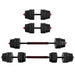 Time to get tough. And our Barbell and Dumbbell 2-in-1 Set is the right deal if you are looking to boost those triceps, biceps and shoulders. Or lose some unwelcomed fat. Whatever is your game, our Barbell and Dumbbell 2-in-1 Set lets you strengthen and tone those muscles in pleasing style. The innovative design allows for two combinations of modes as barbell and dumbbell, to suit your workout requirements. The 16 plastic-coated iron weight plates allow you to adjust the weights that you want. You can easily add or reduce the weight plates and rotate the weight plates holder to lock into the dumbbell handles. The non-slip handle offers optimal gripping surface and the safety lock feature ensures the weight plates stay securely in place for safe workouts. Plus, with a foam-wrapped barbell bar, it brings more comfort to your workout. Gym junky or workout pro, you can get fit easily with our Barbell and Dumbbell 2-in-1 Set.