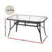 Gardeon 140CM Outdoor Dining Table Steel Frame Tempered Glass Parasol Hole Black