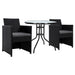 Gardeon 3PC Bistro Set Outdoor Furniture Rattan Table Chairs Cushion Patio Garden Hugo
