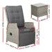 Gardeon 3PC Recliner Chairs Table Sun lounge Outdoor Furniture Wicker Adjustable Grey