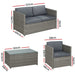 Gardeon 4-Piece Outdoor Sofa Set Wicker Couch Lounge Setting Grey