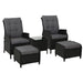 Gardeon 5PC Recliner Chairs Table Sun lounge Wicker Outdoor Furniture Adjustable Black