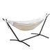 Love hanging around the patio? Or the garden? Or indoors? Our Gardeon Hammock with Stand will get you comfortable in no time at all. Made from 100% cotton fabric, our hammock is soft, comfortable and well-ventilated. Plus, the strong and sturdy stand is constructed of heavy-duty steel with a powder-coated finish for durability and reliability in all kinds of weather use. Not least, it is can also be adjusted for six different height levels with no tools needed. Simple and easy in every way.