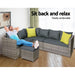 Invite your friends and family over for a garden party or just sit back and relax with our luxurious Gardeon Outdoor Sofa Dining Set. Being a multi-seater, the dining set provides enough room for all your guests to sit or for you to have a lie down and enjoy a book. You can arrange the seats (double seat, corner seat and ottoman) in various ways depending on your needs. The sofa is made of sturdy powder-coated steel frame with quality PE wicker finish that not only looks stylish but is perfect for outdoor use as it is both UV-resistant and weather-resistant. The seat cushions are 8cm thick to provide ultimate comfort and are water-resistant as well. The set also includes a matching table that has a 5mm thick tempered glass top with buffers for added protection.