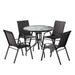 Upgrade your dining space with the Gardeon Black Dining Set, designed for both outdoor and indoor use. This modern set includes a sleek table and four stackable chairs, perfect for small gatherings or family meals. Built with a sturdy steel frame and finished with a durable powder coating, the set is weather-resistant and suitable for all seasons. Its non-slip feet ensure stability on various surfaces, while the smooth surface makes cleaning effortless.