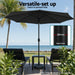 Our Instahut Outdoor Umbrella merges elegance with durability. Featuring LED-lit ribs for evening ambiance and an octagonal polyester canopy for sun protection. Heavy-duty steel frame with 8 ribs ensures stability, while the adjustable tilt mechanism delivers precise shading. Water-resistant fabric withstands weather elements. Effortless manual crank operation simplifies setup—perfect for patios, gardens, or beach retreats.