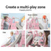 Our Keezi 3-in-1 play set comes with a long slide, safe swing, basketball hoop and a bonus ball and pump, giving your child unlimited hours of fun and engaging play. Crafted from durable, high-density non-toxic material, this fun-filled play set has a triangle force structure that prevents tilting. Plus, the water infusion design increases weight capacity and improves overall stability. Additionally, it has wide, gapless stairs, smooth rounded edges, firm-grip handles, U-shaped stable base, and a secured one-piece swing hanger, ensuring your child’s safety while playing. You can use this play set both indoors and outdoors.