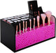 Leather Makeup Brush Cosmetic Organizer Storage Box with Pink Pearls, Acrylic Cover and 3 Compartments(Black)