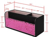 Leather Makeup Brush Cosmetic Organiser Storage Box with Pink Pearls, Acrylic Cover and 3 Compartments(Black)
