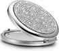Mini Small Diamond 1X/2X Magnifying Round Metal Pocket Makeup Mirror (Silver)