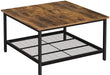 Robust Coffee Table Steel Frame and Mesh Storage Shelf, Rustic Brown and Black