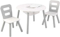 - Whether coloring, crafting, doing homework or enjoying a snack, kids will love the Round Storage Table and Chair Set. The two chairs are perfectly kid-sized and built from sturdy wood and metal.