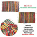 Bring a touch of whimsical charm and eco-friendly style to your floors with this Set of 2 Random Colour Hand Made Cotton Rich Chindi Floor Rugs 60 x 90 cm. These colourful and unique rugs are hand made, making them a sustainable choice for your home. The random colour selection ensures you'll receive a one-of-a-kind set that perfectly complements your decor, while the material adds cosy comfort underfoot. Ideal for entryways, bathrooms, kitchens, or anywhere you need a pop of colour and functionality. In white, blue, red, green, yellow, pink, grey, natural, and orange colour hues.