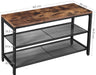 Shoe Rack with 2 Mesh Shelves, Rustic Brown and Black