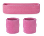 WRISTBAND & HEADBAND SET Tennis Terry Towelling Cotton Sweat Band Team Gym - Light Pink
