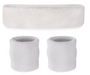 WRISTBAND & HEADBAND SET Tennis Terry Towelling Cotton Sweat Band Team Gym - White