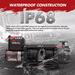 Entire winch unit is rated IP68 waterproof, the highest level of protection, featuring OEM-grade Q-ring rubber gaskets. This new sealing delivers a longer service life and meets the most stringent IP68 submersion testing.